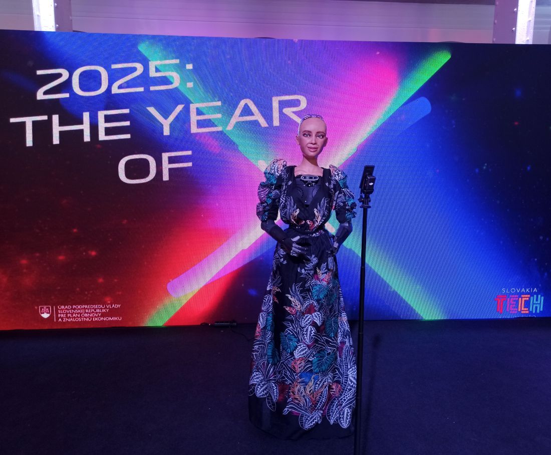 SlovakiaTech Fórum-Expo 2025 je najväčšou medzinárodnou ino-vačno-technologickou konferenciou na Slovensku. V stredu 17.9.2024 ju v Kulturparku v rámci programu Inovuj a podnikaj navštívila I.NSA s M. Jacom. Podľa sloganu podujatia „2025 – The year of X“ dominovali najmä roboty-humanoidy a využitie umelej inteligencie. Aj nás najviac zaujala svetoznáma humano-idka s umelou inteligenciou Sophia z Honkongu, ktorá už rozprá-vala a odpovedala po slovensky (popri 19 ďalších jazykoch). Slovenčinu s ňou trénovali špeciálne pre SlovakiaTech Fórum-Expo.