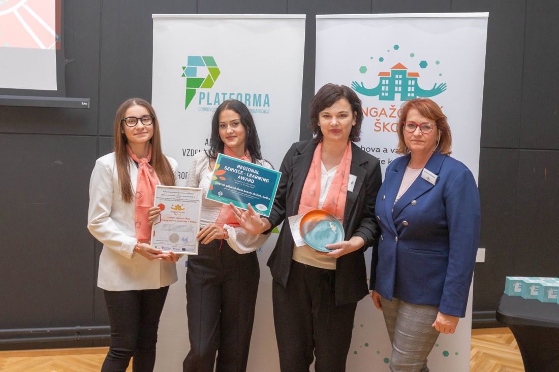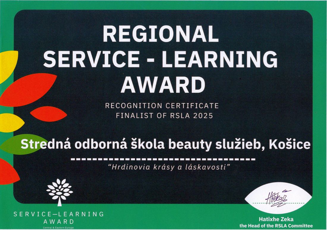 V 6. ročníku Angažovanej školy 2025 sme opäť získali titul Angažovaná škola a ako jediná škola na Slovensku aj mimoriadne ocenenie za dlhodobý rozvoj dobrovoľníckych service learningových projektov. Zároveň sme postúpili do medzinárodného kola Regional Service Learning Award. Ocenenia za školu prebrali p. uč. Fertaľová spolu s P. Beerovou I.NSA a F. Kovácsovou III.A na konferencii Piliere výchovy k dobrovoľníctvu 9. 10. 2025 v Banskej Bystrici. Do národného kola...