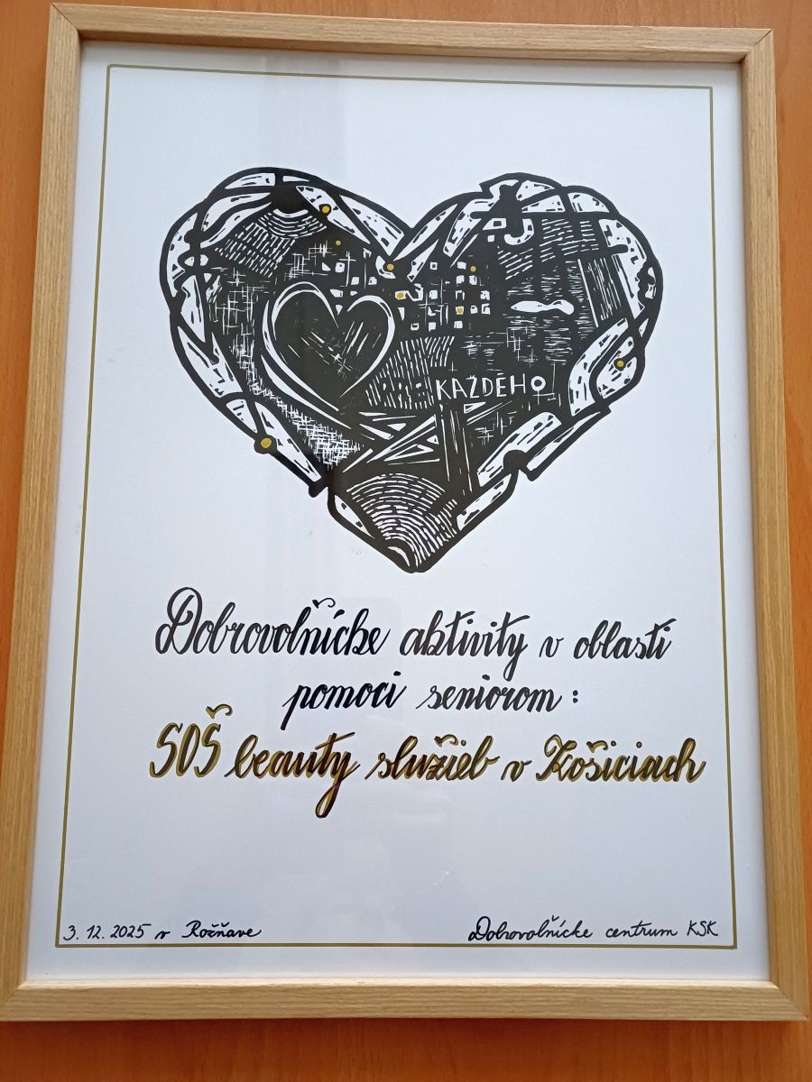 3. 12. 2025 sa v rožňavskej radnici konal slávnostný galavečer, pri kto-rom župan KSK Rastislav Trnka a zástupcovia Dobrovoľníckeho centra Košického kraja oceňovali dobrovoľ-níkov. Tých, ktorí menia život k lepšiemu. Je pre nás veľkou cťou, že sme získali ocenenie za dobro-voľnícke aktivity v oblasti pomoci seniorom. Naše beauty dni, masáže rúk imobilným klientom, interaktívne workshopy, ale aj empatia, milý úsmev, pekné slovo, láskavosť a úcta voči nim priniesli v tomto ocenení veľké zadosťučinenie. 22 zúčastnených študentov zastupovalo všetkých žiakov našej školy, ktorí sa do dobrovoľníctva zapájajú. Všetkým, ktorí tieto aktivity podporujú, patrí rešpekt a veľká vďaka..