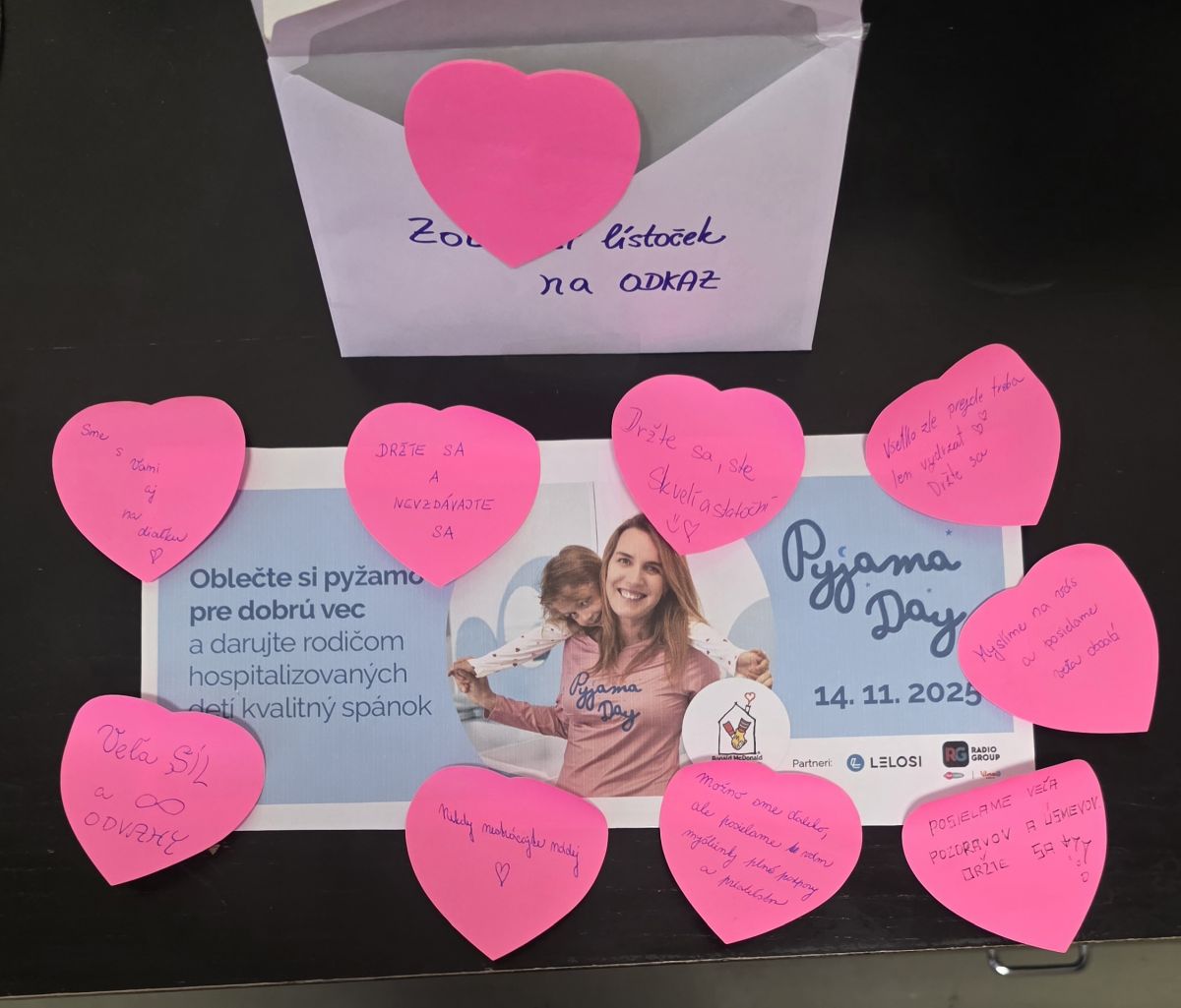 Naša škola sa zapojila do celo-slovenskej výzvy Pyjama Day pod záštitou neziskovej organizácie Ronald McDonald House Charities Slovensko, ktorá dlhodobo pomáha rodinám hospitalizovaných detí. Okrem oblečenia pyžama zapojili sme sa tiež do dobrovoľnej zbierky na podporu hospitalizovaných detí a ich rodín. S radosťou ozna-mujeme, že sa nám podarilo vyzbierať 85 €, ktoré poputujú na nákup pohodlných rozkladacích postelí pre rodičov hospitalizo-vaných detí v Nemocnici s poliklinikou Liptovský Mikuláš. Ďakujeme všetkým, ktorí si obliekli pyžamo alebo prispeli do zbierky. Ukázali sme, že solidarita a dobrota majú v našich triedach a srdciach pevné miesto