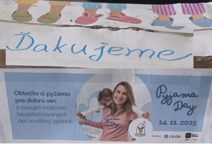Naša škola sa zapojila do celo-slovenskej výzvy Pyjama Day pod záštitou neziskovej organizácie Ronald McDonald House Charities Slovensko, ktorá dlhodobo pomáha rodinám hospitalizovaných detí. Okrem oblečenia pyžama zapojili sme sa tiež do dobrovoľnej zbierky na podporu hospitalizovaných detí a ich rodín. S radosťou ozna-mujeme, že sa nám podarilo vyzbierať 85 €, ktoré poputujú na nákup pohodlných rozkladacích postelí pre rodičov hospitalizo-vaných detí v Nemocnici s poliklinikou Liptovský Mikuláš. Ďakujeme všetkým, ktorí si obliekli pyžamo alebo prispeli do zbierky. Ukázali sme, že solidarita a dobrota majú v našich triedach a srdciach pevné miesto